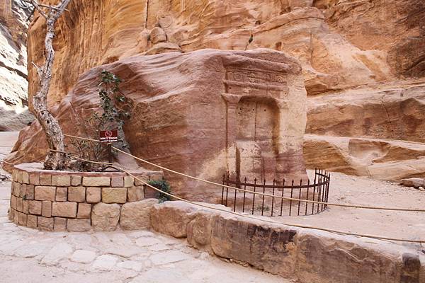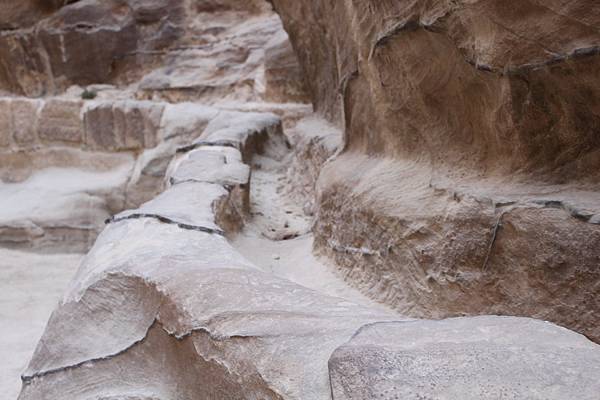 納巴泰人沿山壁鑿出的引水道,利用地勢高低差,將水源引進佩特拉。