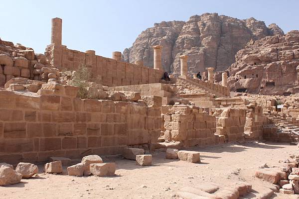 Great Temple是佩特拉中心最大的建築物,建於西元100年左右,占地約7560平方公尺。隨著階梯往上走,神廟依不同高度分成兩個區域,下層是個正前方是個開放式的庭院,上層則是主建築所在地,
