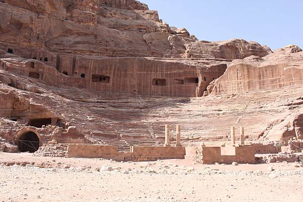 古城中也有可容納數千人的羅馬式劇院,是沿著岩壁開鑿而成。再往內走就看到羅馬石柱及各種神廟建築。