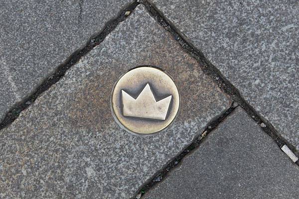 鑲嵌在地面皇冠標誌的小銅牌,是本城的城徽。代表國王從聖馬丁教堂加冕後,接受人民歡迎時所走的路線。