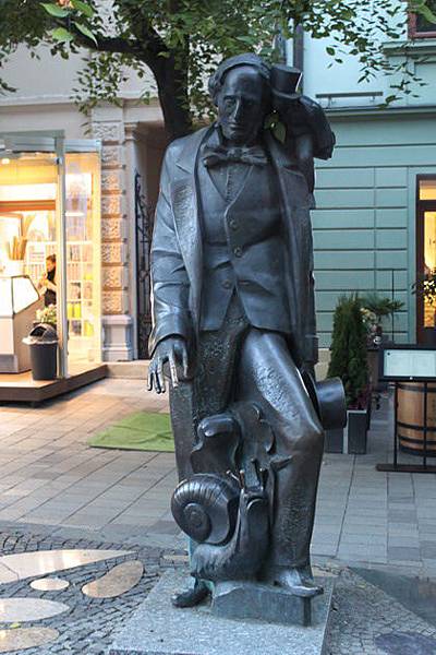 萬事萬物在丹麥作家安徒生眼裡,都有不平凡的故事。肩上的猴子和腳下的蝸牛,都是靈感的來源!安徒生曾於1841年拜訪布拉提斯拉瓦,這裡的街道是安徒生的最愛,據信『賣火柴的少女』與『醜小鴨』都是以此城為背景所創作。