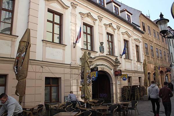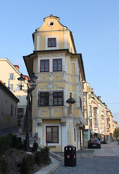 古老的藥局,門楣上方有三種文字:匈牙利、 斯洛伐克、奧地利(德文)。因為當時此地是通商要道,必須讓外國人也看得懂。