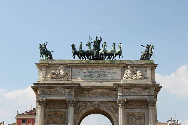 和平拱門原為米蘭的一座城門,原址是羅馬城牆的大門,1807年拿破崙時期開始建造,工程曾因戰爭而中斷,1838 年奧地利統治期間竣工。